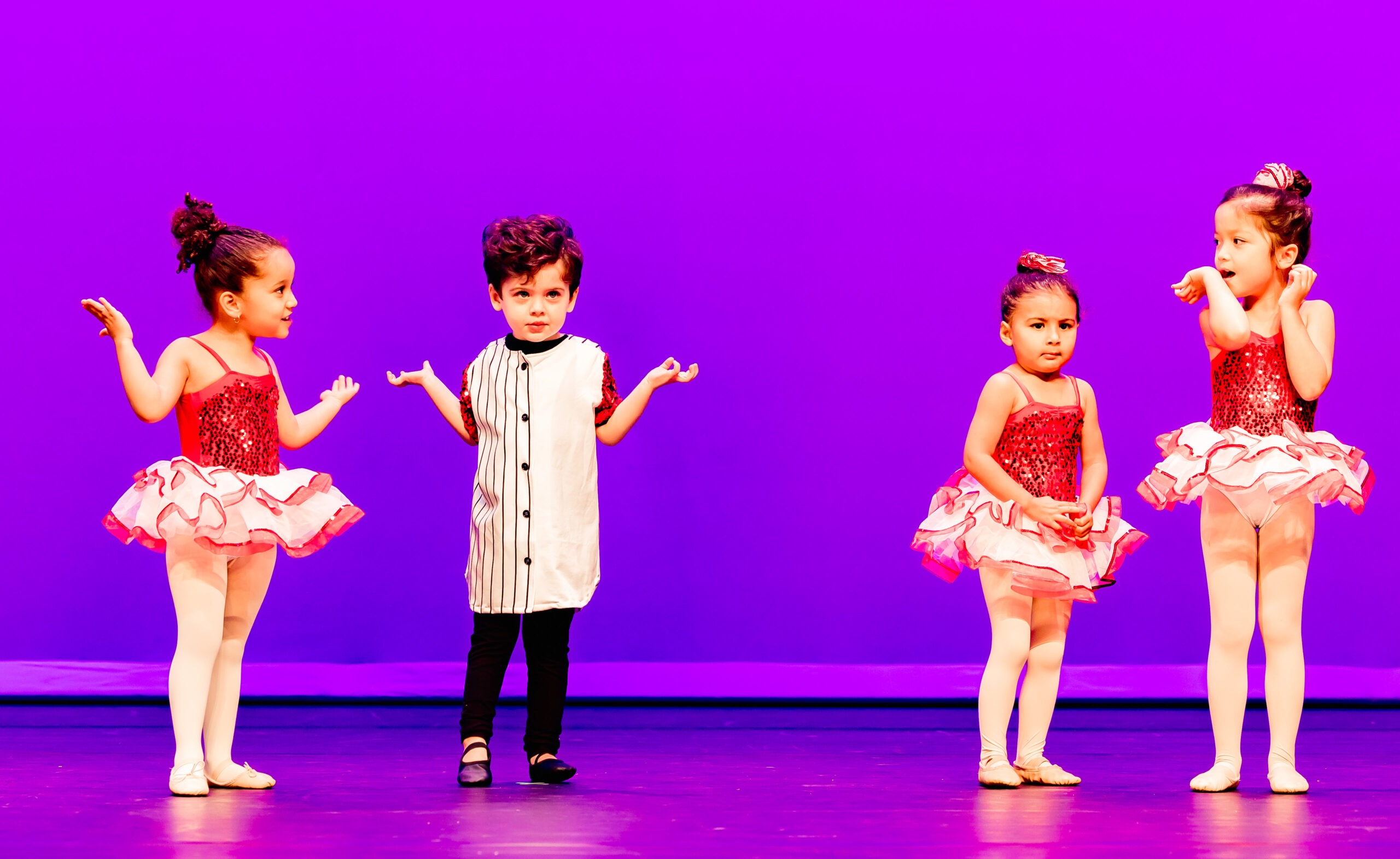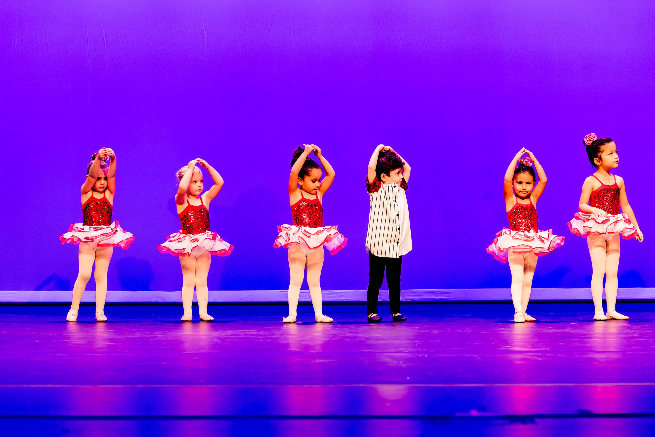 Our “Second Annual Winter Wonderland” elevated holiday magic to new heights. With elegant ballet pieces set to “The Nutcracker Suite” and charming character dances to “Frosty the Snowman,” this recital brought smiles and seasonal joy to everyone in attendance. The photos highlight the twinkling lights, dazzling costumes, and heartfelt performances that made this event unforgettable. This performance was held at the beautiful Wesley Chapel Center for the Arts.